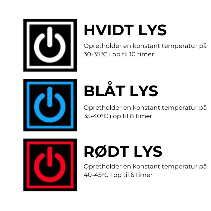 Pas je warmte aan met drie verwarmingsinstellingen waarmee je de temperatuur kunt aanpassen aan jouw comfortniveau. Of je nu een ontspannen wandeling maakt of intensieve buitenactiviteiten onderneemt, regel de warmte met slechts één druk op de knop.