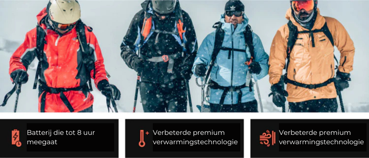 Met onze nieuw verbeterde premium batterij gaat de warmte in onze jassen tot wel 12 uur mee.